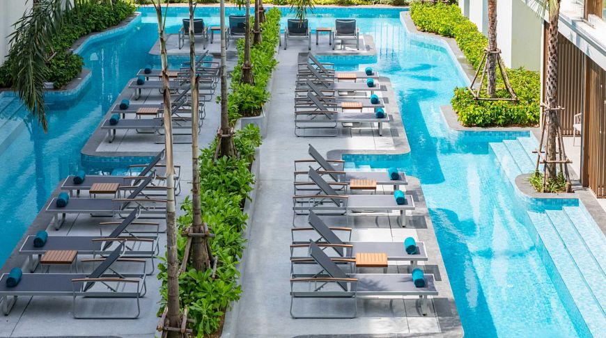 Глубокий, просторный, окружённый тропическим садом. Здесь можно плавать, лежать в шезлонге с коктейлем или просто размышлять о том, как вы прекрасно умеете устраивать себе отпуск.